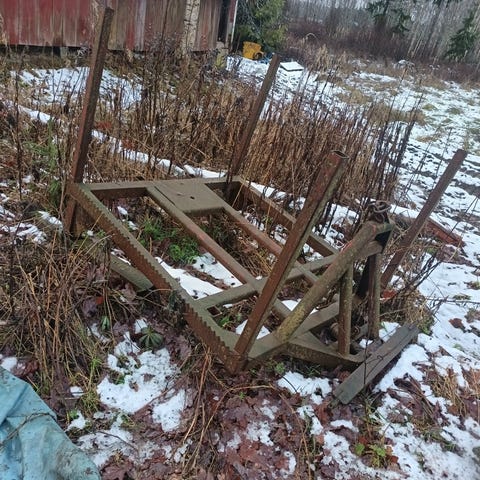 Pienelle traktorille mönkijälle miksei kelkallekkin metsäreki esim valmet 502 nytkykin on Sepän tekemä kunto hyvä mitat rungosta: