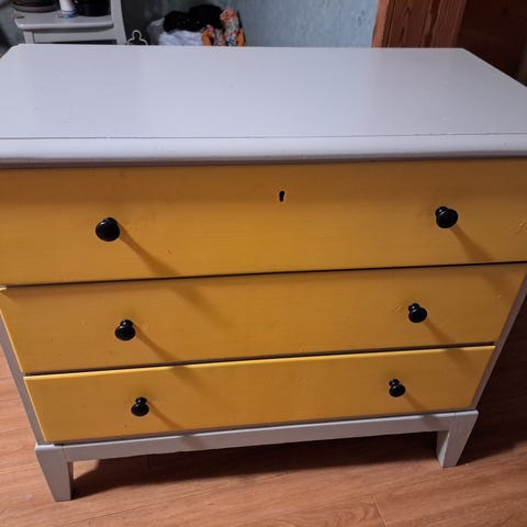 Pientä käytönjälkeä voi löytyä, mutta pääasiassa lipasto on hyvässä kunnossa.