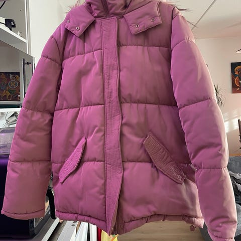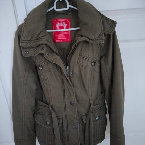 Noin 65 cm kaulasta helmaan ja 42 cm kainalosta helmaan. Polyester. Hupun reunus tekoturkista. Takin voi pestä pesukoneessa 40 asteessa pesulapun mukaan. Haku koskelasta tai voin tuoda iltapäivisin amerinkulmaan.