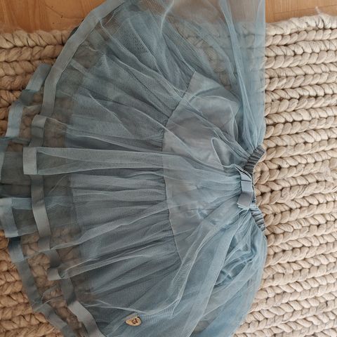 Ihanan värinen tylli hame ja glimmer raitainen paita. Kyynärpäässä hailu jälki ei pistä silmään. vaaleansininen. Myynnissä myös mintun värinen tylli setti