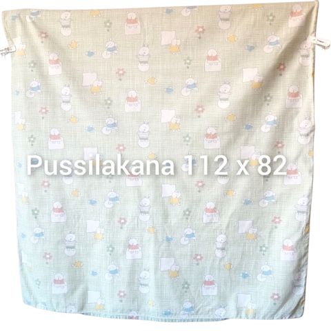 Pussilakana n.90x109cm + n.32cm lisäkaistale (esim. patjan alle käännettäväksi, jolloin pussilakana pysyy paikoillaan paremmin).