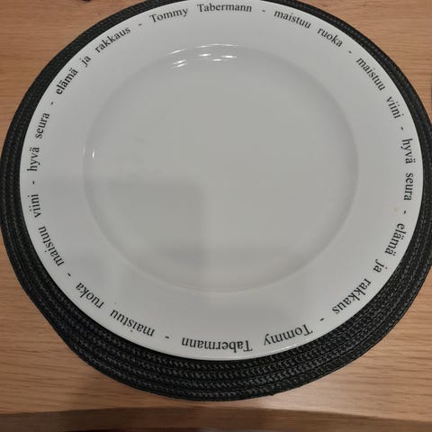 7 kpl tommy tabermann lautasia. Lautasen halkaisija n. 21cm. Nouto käteismaksu ja tasa raha. Myydään yhteishintaan 10e