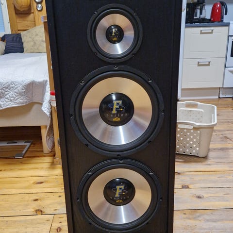 Laadukkaat kaiuttimet. Toimivat. Muutama pieni jälki maalipinnassa. Mahdollisuus koekuunnella.