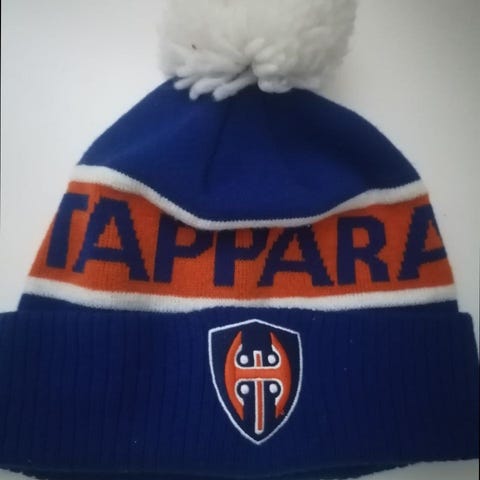 Tappara fanihuivi, kaulahuivi. Kaulahuivin koko on 150*17 cm. Huivi on todella lämmin jos sitä haluaa käyttää arkikäytössä. Huivi on alkuperäinen ja ostettu 1990-luvun alkupuolella.