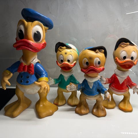 Disney vintage vauvan karuselli-lattialelu Ø15cm kork. 20cm. Päältä sinisestä napista painettaessa jousi laittaa karusellin pyörimään, kyydissä Aku-vauva, Mikki-vauva sekä Pluto-vauva. Sisällä olevat pienet muovikuulat pyörivät mukana. Kupu ajan patinoima mutta ei vaikuta leikkimiseen. 33€