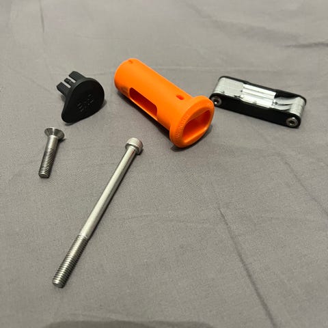 Saat kaupan päälle myös juomapullotelineen johon töötin pullon saa kiinni jos et halua käyttää mukana tulevaa velcrokiinnitystä.