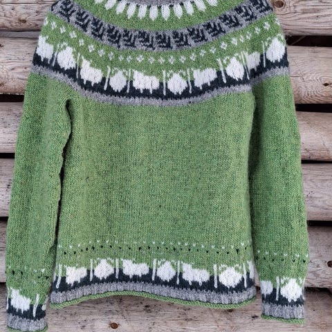 Kaunis islantilaisten lampaiden villasta käsinkudottu villapaita. Lankana Lettlopi. Pääväri turkoosi. Koko M. Rinnanympärys 104cm, hihan sisäpituus 52cm, korkeus 70cm. Kysy lisää mittoja jos koko mietityttää! Malli on oma.
