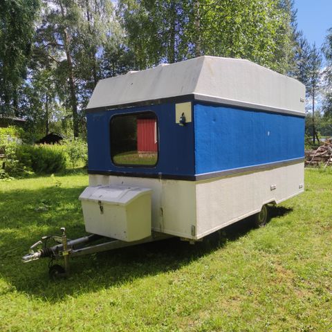 K-auton 3 aks. perävaunusta tehty eristetty työmaavaunu.