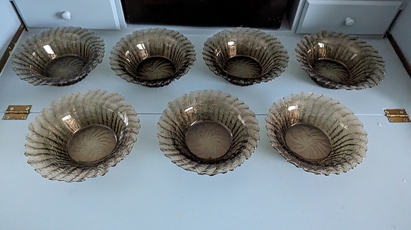 Löytyy ainakin vuoden 1983 Nuutajärvi Arabia kuvastosta, jossa suunnitteluvuodeksi mainitaan 1955. Suunnittelija jäänyt tuntemattomaksi. Myyty sekä Nuutajärven että Arabian leimoilla.