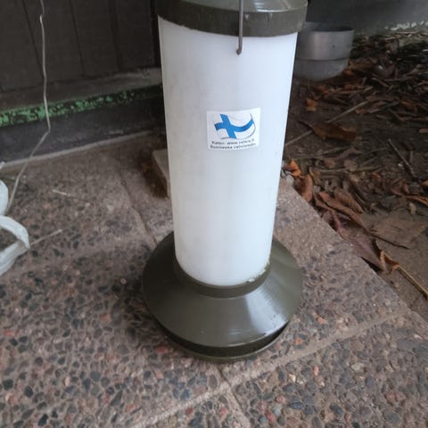 Telkänpönttö filmivaneria, kulmatolpat puuta. Pohja saranoitu langalla, helppo vaihtaa kuivikkeet kevättalvella. Asennuslangat valmiina. Kevyt. Materiaali kestää säät yli 10v. Aukon alapuoli karhennettu. Asennetaan hieman etukenoon jotta poikaset kiipeää helpommin ulos. Kuivikkeet mukaan.