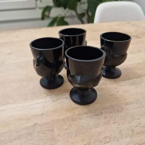 Kaksi munakuppi settiä (4kpl). Toiset Globus puuta ja toiset Eva ruostumatonta terästä.