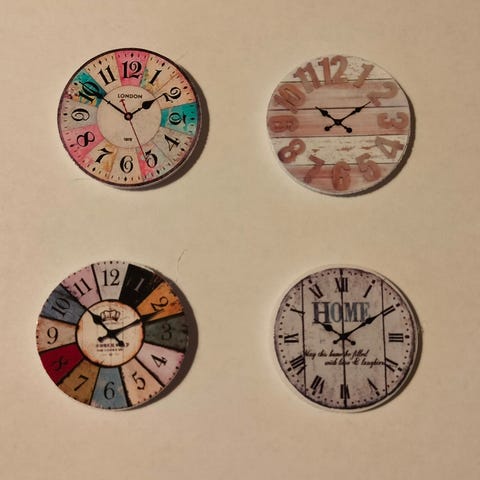 Herätyskello valkoinen metallia korkeus 15mm. 3e/kpl. Postikulut 2,75e.