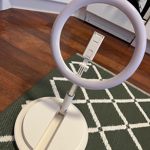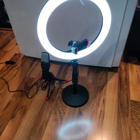 LED-rengasvalaisin säädettävällä jalustalla.