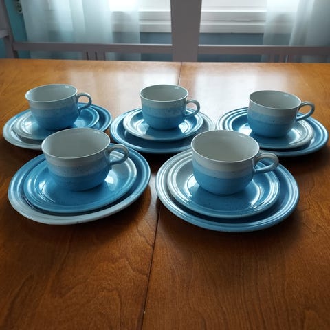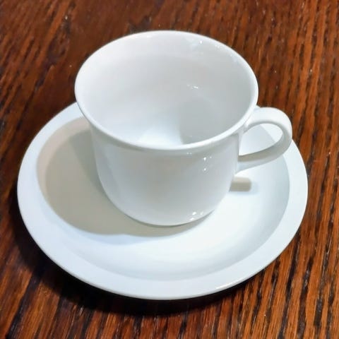 korkeus lautasen kanssa 8,5 cm, lautasen lev 19 cm, kupin 14 cm