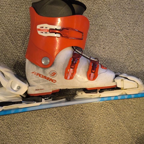 Monot vastaavat 34/35 kokoa. Sukset hyvässä kunnossa vaikka ovatkin vanhat koska ei ole käytetty paljon.