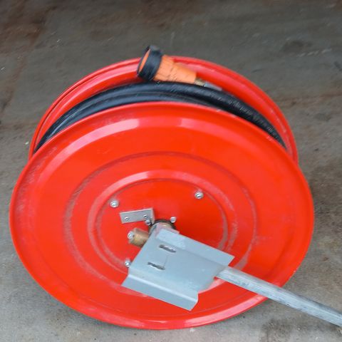 Myynnissä pikapalopostin vesijohtokela. Kelaan matuu tuuman kokoista vesijohtoa noin 40 metriä. Tässä kunnon laakeroinnit, eli ei voi verrata mihinkään muovisiin rempulakeloihin. 100 €:n lisämaksusta noin 30 metriä huippulaadukasta pikapalopostiletkua ( hinta kaupassa n. 7 € metri ) ja TA Handfigter 2 suihkupää :
