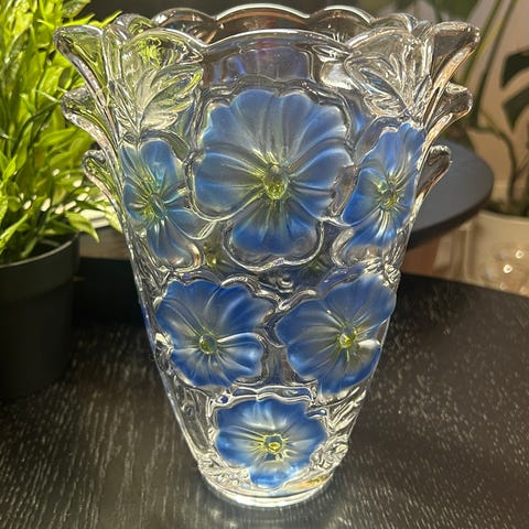 Käyttämätön virheetön painava lasinen tarjoiluastia. Kohokuviointi halkaisija 28cm.