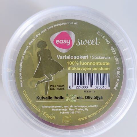 Kaksi avaamatonta herkän ihon easy sweet-vartalosokeria.