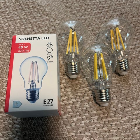 Ikean käyttämätön 15 w led-polttimo ruskeaa lasia. Korkeus n. 18 cm, E27-kanta. Nouto Harjusta