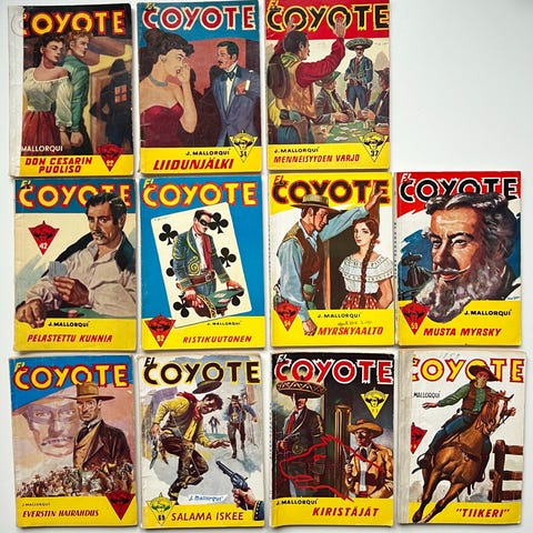 Katso myös muut ilmoitukseni: Myynnissä mm. Tex Willer sarjakuvakirjoja, vanhoja Mustang, El Coyote, Lännensarja, Colorado ja Colt sarjojen lehtiä 1950-60 -luvuilta, sekä Aku Ankka lehtiä ja taskukirjoja 1960-2000 luvuilta.
