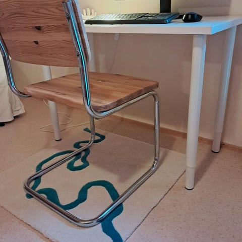 Matto asettuuu kauniisti lattialle. Kuvat vääristää väriä, mutta tummempi harmaa on, lisäkuvia saa tarvittaessa