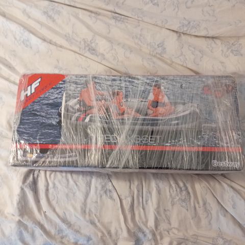 Setti sisältää kumiveneen lisäksi airot, jalkapumpu sekä korjaussarjan