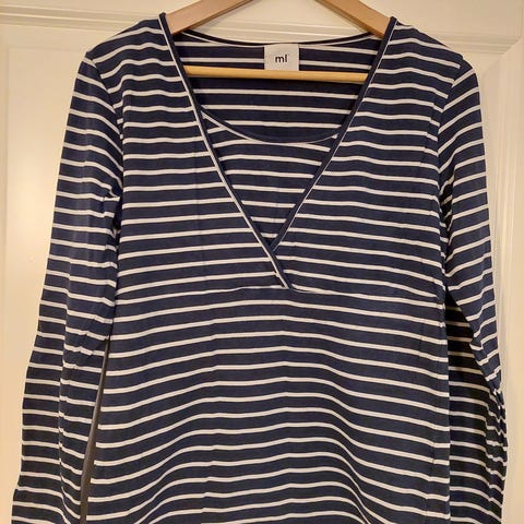 Itsetehty, siististi ommeltu imetyspaita laadukkaasta ohuesta kotimaisesta trikoosta. A-linjainen. Ei tahroja.