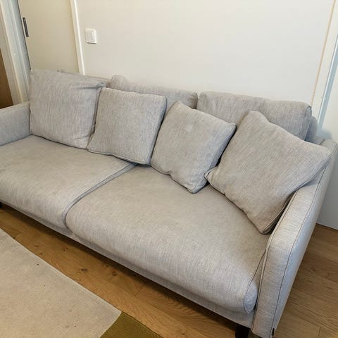 Tuotetiedot: Laadukas ja tyylikäs Furninova-sohva todella kivalla värillä. Sohva on pesty tekstiilipesurilla.