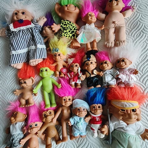Sekalaisehko lauma trollipeikkoja vuosikymmenten takaa.