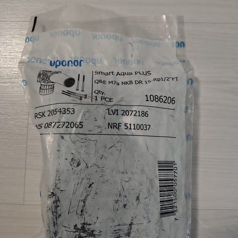 Hanakulmarasia Uponor Smart Aqua Plus M7A, NKB DR PEX 15x2.5-RP1/2"SK 1 kpl paketissa , löytyy muutama
