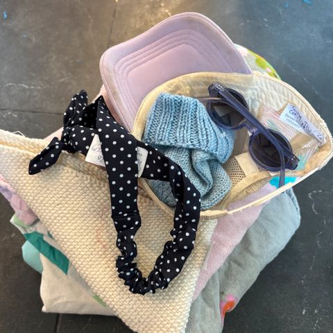 Äitiyspakkauksen sukat ja lapaset. Valkoisia käytetty muutaman kerran. Raidalliset jäivät käyttämättä.