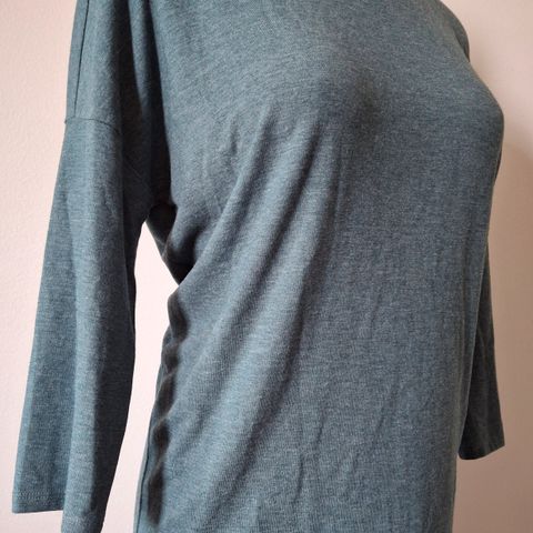 Neule puolipitkillä hihoilla ja minimaalisesti helmaan kapeneva.