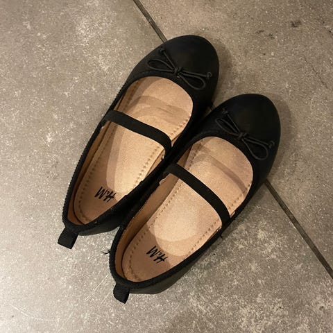 Myydään yhdellä tytöllä lähinnä sisäkäytössä olleet mywear balleriinat koossa 28. Säihkyvät kengät ovat väriltään mustat.