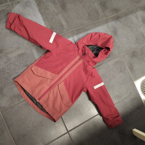 Myydään muutaman kerran päällä ollut Lindexin kuoritakki koossa 110/116. Takissa verkkovuori. Harmaat kohdat heijastinta.