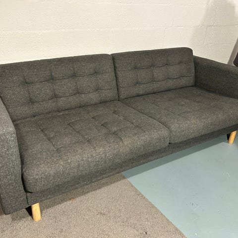 Myyn sohvaani hyvässä kunnossa, vain muutama pieni naarmu, jotka näkyvät kuvassa. Voit tulla katsomaan sitä, mutta vain, jos olet aidosti kiinnostunut ostamaan. Tässä on linkki sohvaan Ikean sivuilla: ikea.com/fi/en/p/landskrona-3-seat-sofa-with-chaise-longue-grann-bomstad-black-wood-s59031877/