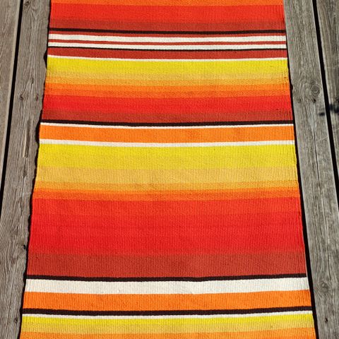 Värikäs vanha käsinkudottu raanu. Samanlainen kuin nro 2. raanu. Pituus 157 cm ja leveys 92 cm. Ehjä ja siisti. Kuvissa on kameran linssistä tulevia varjoja, eivät ole raanussa. Myynnissä myös toinen samanlainen raanu.Postitus tai nouto.