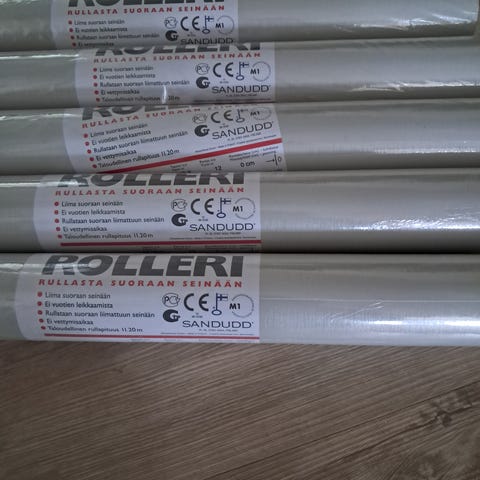 Myydään 3 rullaa non-woven-tapettia. Yksi rullista avattu mallausta varten, mutta ei ollutkaan sopiva ajateltuun tilaan. On siis täysi ja uutta vastaava sekin. Kuvat vastaavat mielestäni hyvin totuutta ainakin oman kännykän ruudulla: ehkä aavistuksen kirkkaampi luonnossa. Väri on vaaleahko mintunvihreä, ei harmaa. Kohdistus 32 cm, rullassa 11,2 m tapettia. Leveys 0,53 cm. Sijaitsevat Outokummussa, mutta kulkeutuvat Joensuuhun pari kertaa viikossa.