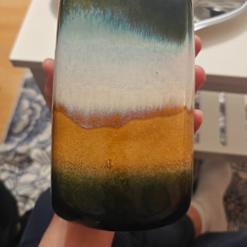 Keraaminen, sisäpuolelta lasitettu W.Germany maljakko. Sävyt kauniit tummasta liilasta vaaleampaan.