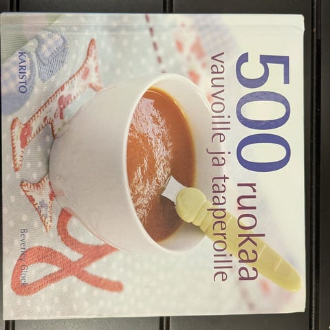 Kaksi hyväkuntoista reseptikirjaa vauvan soseille, sormiruokiin ja taaperoruokiin. 500 ruokaa vauvoille ja taaperoille sekä kotiruokaa vauvalle. Paljon reseptejä joista syö koko perhe. Nouto tai postitus toridiilin kautta.