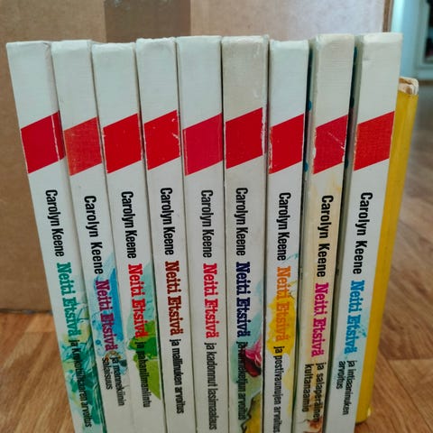 Carolyn Keene nimimerkillä kirjoitetut Neiti Etsivä kirjasarjan kaikki suomenkieliset kirjat 105 kpl. Hinta 550€. Myydään vain kokonaisena sarjana. Vain nouto. Kirjat eivät samaa sarjapainantaa.