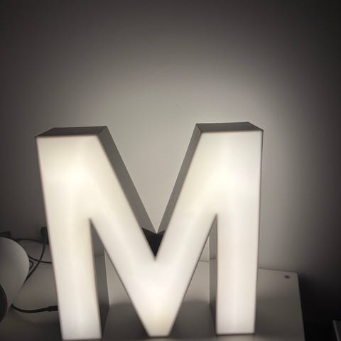 Hieno vanhasta valomainoksen kirjaimesta tehty valaisin. T-kirjain LED valolla.