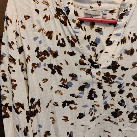 Vaalea liila/sininen vuorellinen neulepaita. Pientä pesuhaituvaa pinnassa ja pesulappu haalistunut. Yleisilme siisti. Ehjä.