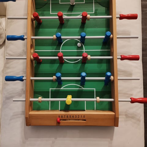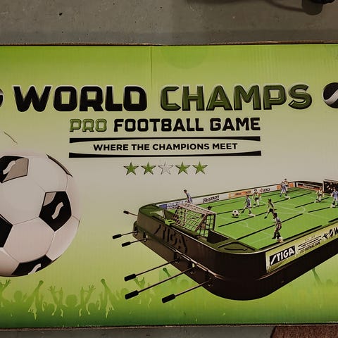 Myydään Stigan laadukas pöytäjalkapallo, jossa Suomen ja Englannin pelaajat vastakkain. Peli on hyväkuntoinen ja kaikki toimii. Myös nurmi on hyvässä kunnossa.