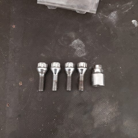 Uudet lukkopultit ja avain. 60 asteen kartiolla.