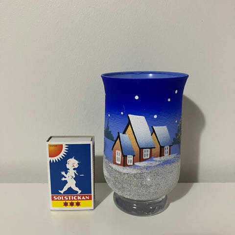 Kynttilä vanhan tyylisessä kahvikupissa. Kuppi ja lautanen ovat kiinni toisissaan.