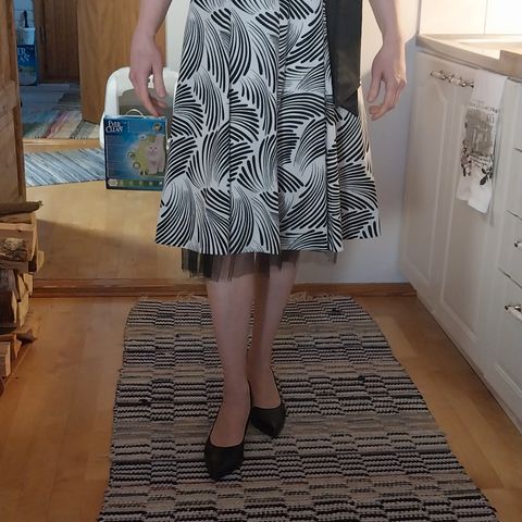 Puuvillainen retromekko. M-Koko, kai-kai noin 47. Siisti kunto, kangas hieman kuluneempi kainaloista. Koiratalous.