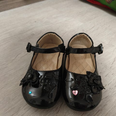 Myydään tyttöjen mustat juhlakengät, koko 25. Sisäpohja noin 15 cm.