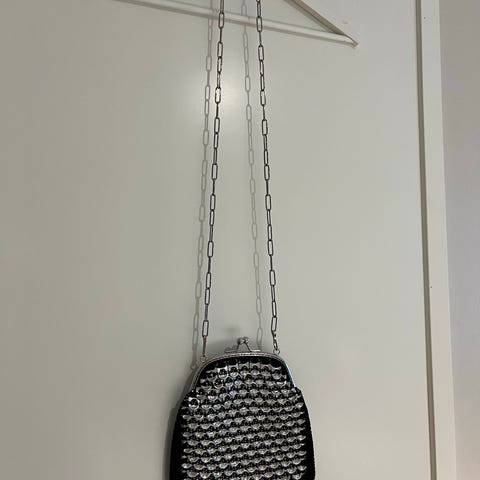 Olkalaukku, käsikahvalla, muovia, kuvaosa paksua kangasta, hauska laukku! Koko 34 x 24 cm