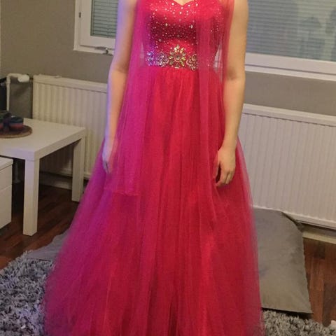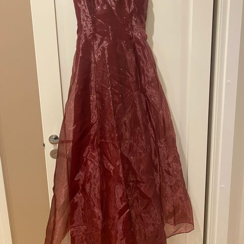 Kerran pidetty vanhojentanssimekko merkkiä Linda Perreira, kokoa S. Mekko on lyhennetty sopivaksi 162 cm pitkälle tanssijalle, joka tanssi platform lenkkarit jalassa. Sopii siis hyvin <165 cm pituiselle tanssijalle ja sitä voi lyhentää edelleen.
