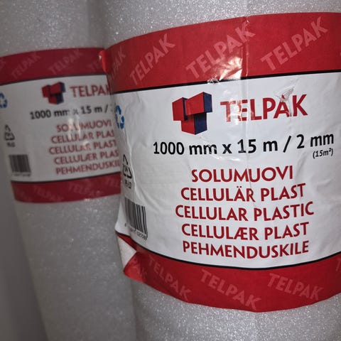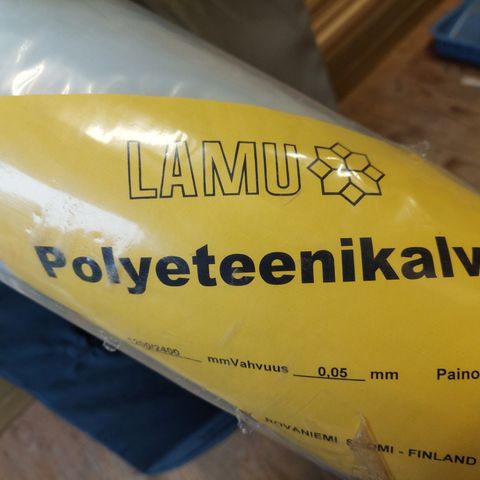 Alusmuovi kosteussulkukalvolla ja limitysläpällä parketin ja laminaatin askeläänen eristykseen.